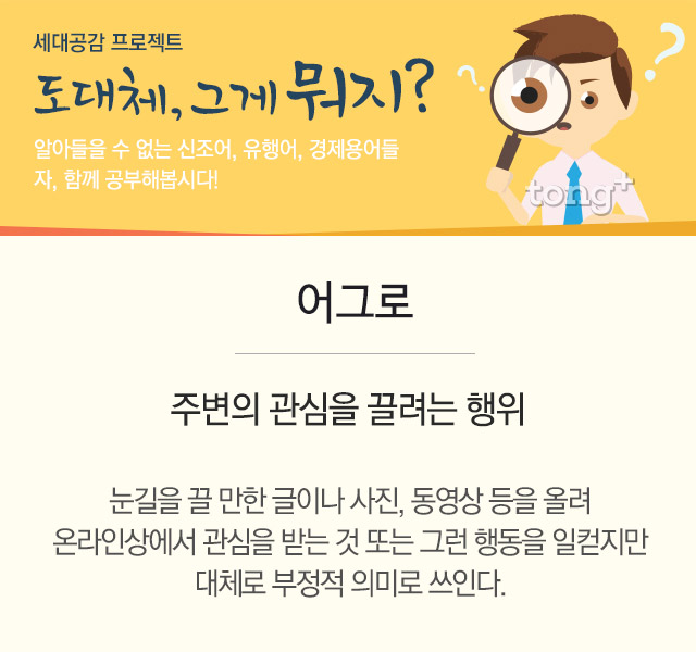 “또 저 사람 어그로 끄네” 하면서 외면당할 수도 있는 거죠. 그러니까 ‘어그로’는 적당히, 상황에 맞게 쓰는 게 중요해요.
