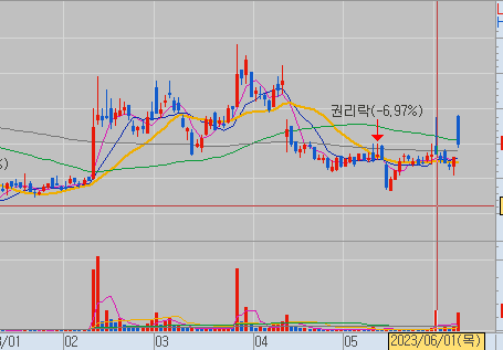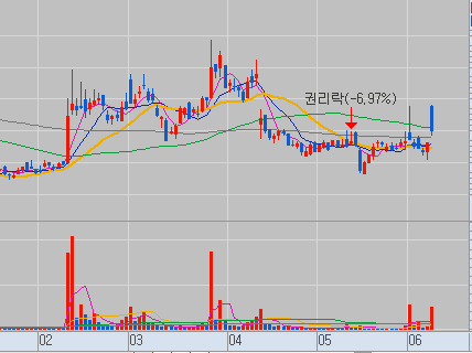 이 종목은 정하시려면 길게 보고 하셔야 됩니다. 왜 그러냐면 일단 가장 최근에 많이 들어온 돈이 들어온 날이 6월 1일인데요. 이날에 보시면 거래 대금이 630억입니다. 630억을 들여서 이제 개부를 한번 띄우고 이제 그 이후에 쭉 가격이 하락하고 그 이후로도 계속 6월 5일까지 하락하고 있는데요.