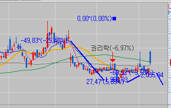 대략 한 표시해 보면 한 제가 긁은 선에는 2천 원에서 1900원 사이로 나오고 있는데요. 그런데 만약에 이제 이렇게 내리다가 한번 반등을 하는 그런 양봉이 나오면 그 양봉을 이제 손절선으로 잡고 한번 가도 나쁘지 않을 것 같습니다. 근데 아직까지는 글쎄요 일단 분봉에서 보면 이전에 한번 크게 떨어졌다가 이제 반등한 자리가 2천 원 정도이기 때문에 뭔가 추세를 뒤집는 이런 큰 양봉이 나오지 않는 한은 2천 원 전후 아니면 더 내린다고 가정하면 한 21,900원 전후까지는 봐야 될 것 같습니다.